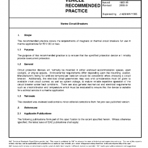 This recommended practice covers the requirements of magnetic or thermal circuit breakers for use in marine applications for 50 V DC or less.