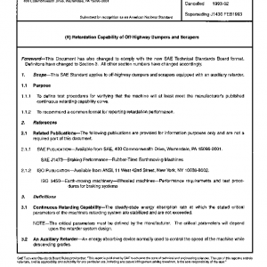 This SAE Standard applies to off-highway dumpers and scrapers equipped with an auxiliary retarder.