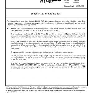 This SAE Recommended Practice covers two levels of high strength structural low-alloy steel bars having minimum Yield Points of 345 MPa (50 ksi) and 450 MPa (65 ksi).
