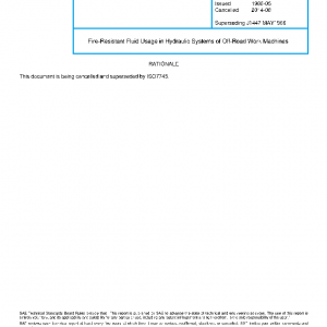 Fire-Resistant Fluid Usage in Hydraulic Systems of Off-Road Work Machines(Cancelled Aug 2014, Superseded by ISO 7745)