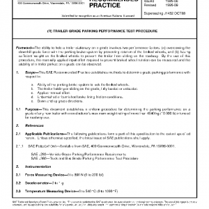 This SAE Recommended Practice establishes methods to determine grade parking performance with respect to: