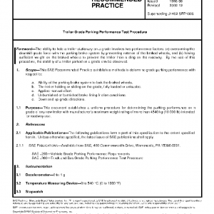 This SAE Recommended Practice establishes methods to determine grade parking performance with respect to: