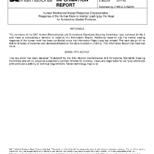 Human Mechanical Impact Response Characteristics – Response of the Human Neck to Inertial Loading by the Head for Automotive Seated Postures(STABILIZED Feb 2011)