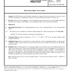 This SAE Recommended Practice is intended for testing of manual slack adjusters as they are used in service, emergency, or parking brake systems for vehicles that can be licensed for on-road use.