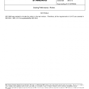 This SAE Standard specifies brake system performance and test criteria to enable uniform evaluation of the braking capability of self-propelled, ride-on vibratory steel wheel, static steel wheel, and rubber-tire roller compactors with maximum level surface machine speeds of 25 km/h or less. Service, secondary, and parking brakes are included. Machines with maximum level surface machine speeds greater than 25 km/h shall conform to the requirements of SAE J/ISO 3450.
