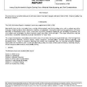 Heavy-Duty Nonmetallic Engine Cooling Fans–Material, Manufacturing, and Test Considerations(Cancelled Feb 2012)