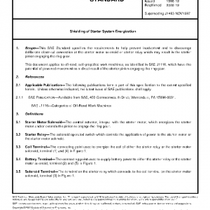 This SAE Standard specifies the requirements to help prevent inadvertent and to discourage deliberate electrical connection at the starter motor solenoid or starter relay which may result in the starter pinion engaging the ring gear.