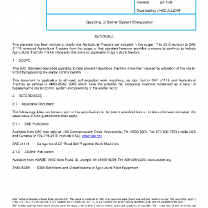 This document is applicable to off-road, self-propelled work machines, as identified in SAE J1116 and Agricultural Tractors as defined in ANSI/ASAE S390 which have the potential for hazardous machine movement as a result of bypassing the starter control system and powering of the starter motor.