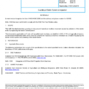 This SAE Standard describes guarding to help prevent hazardous machine movement caused by activation of the starter motor by bypassing the starter control system.