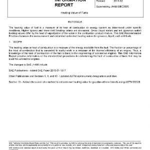 The heating value or heat of combustion is a measure of the energy available from the fuel. The fraction or percentage of the heat of combustion that is converted to useful work is a measure of the thermal efficiency of an engine. Thus, a knowledge of the heat of combustion of the fuel is basic to the engineering of automotive engines. This SAE Information Report provides information on the standardized procedures for determining the heat of combustion of fuels that may be used for automotive engines.