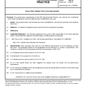 These performance requirements have been established for manual slack adjusters when tested to SAE J1461.