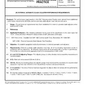 The performance requirements have been established for external automatic slack adjusters when tested to SAE J1462.