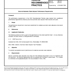 The performance requirements have been established for external automatic slack adjusters when tested to SAE J1462.