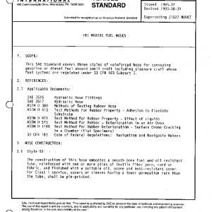 This SAE Standard covers three styles of reinforced hose for conveying gasoline or diesel fuel aboard small craft including pleasure craft whose fuel systems are regulated under 33 CFR 183 Subpart J.