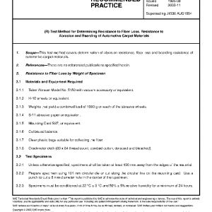 This test method covers determination of abrasion resistance, fiber loss and bearding resistance of automotive carpet materials.