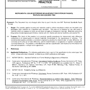 The practice applies to parts and materials used in vehicle manufacture which are intended to be acceptable color matches to a specified color standard. This practice is intended for use with parts or materials which are opaque or nearly so and does not apply to transparent materials. Materials covered by this practice include topcoat paint finishes, interior soft trim, interior and exterior hard trim, and exterior film.