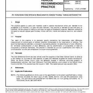 The practice applies to parts and materials used in vehicle manufacture which are intended to be acceptable color matches to a specified color standard. This practice is intended for use with parts or materials that are opaque or nearly so and does not apply to transparent materials. Materials covered by this practice include topcoat paint finishes, interior soft trim, interior and exterior hard trim, and exterior film.