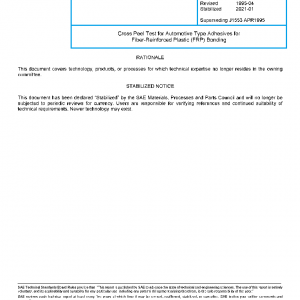 This SAE Recommended Practice describes a cross peel test method for use in measuring the bonding characteristics of automotive-type adhesives for joining fiber-reinforced plastics to themselves and to metals.