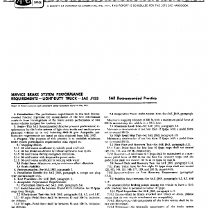 This SAE Recommended Practice presents performance requirements for the brake systems of light-duty trucks and multipurpose passenger vehicles up to and including 6000 lb gvw. Acceptable performance requirements are based on data obtained from SAE J843.