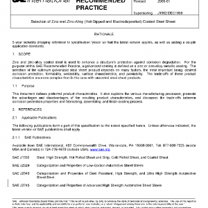 Zinc and zinc-alloy coated steel is used to enhance a structure’s protection against corrosion degradation. For the purpose of this SAE Recommended Practice, a galvanized coating is defined as a zinc or zinc-alloy metallic coating. The selection of the optimum galvanized steel sheet product depends on many factors, the most important being: desired corrosion protection, formability, weldability, surface characteristics, and paintability. The trade-offs of these product characteristics are more complex than is the case with uncoated steel sheet products.