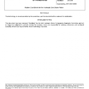 This SAE Standard covers molded rubber boots used on disc brake pistons to prevent the entrance of dirt and moisture which could cause corrosion and otherwise impair caliper operation.