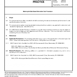 This test procedure provides a standard method for evaluating the side stand retraction performance of a side stand/motorcycle combination.