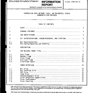 The scope of this specification is to define the transfer layer and the consequences of the Controller Area Network (CAN) protocol on the surrounding layers.
