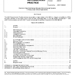 This SAE Recommended Practice defines a document for the format of messages and data that is of general value to modules on the data communications link. Included are field descriptions, size, scale, internal data representation, and position within a message. This document also describes guidelines for the frequency of and circumstances in which messages are transmitted.
