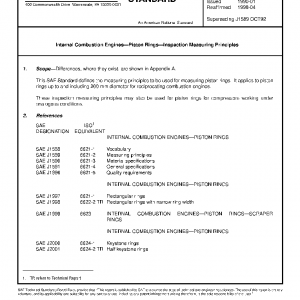 This SAE Standard defines the measuring principles to be used for measuring piston rings. It applies to piston rings up to and including 200 mm diameter for reciprocating combustion engines.