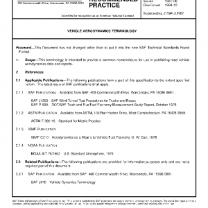 This terminology is intended to provide a common nomenclature for use in publishing road vehicle aerodynamics data and reports.