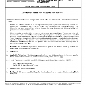 The following information covers engine accessory drive layout details and testing methods and includes test configurations, pulley diameters, power loads, and guidance for interpreting test data. This information has been prepared from existing literature, including standards and data supplied by both producers and users of V-ribbed belts.