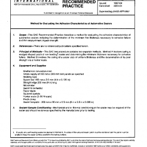 This SAE Recommended Practice describes a method for evaluating the adhesion characteristics of automotive sealers including the determination of the minimum film thickness necessary to cohesive failure and the measurement of peel strength.