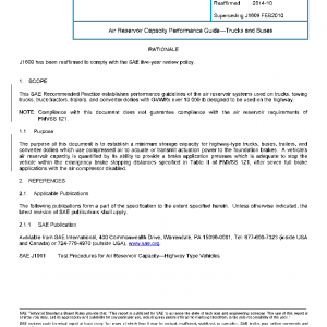 This SAE Recommended Practice establishes performance guidelines of the air reservoir systems used on trucks, towing trucks, truck-tractors, trailers, and converter dollies with GVWRs over 10 000 lb designed to be used on the highway.