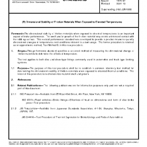 This performance standard specifies a universal method of measuring the dimensional change of friction materials to determine the effects of temperature.