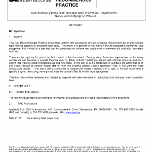 This SAE Recommended Practice establishes uniform test procedures and performance requirements for engine coolant type heating systems of enclosed truck cabs. The intent is to provide a test that will ensure acceptable comfort for cab occupants. It is limited to a test that can be conducted on uniform test equipment in commercially available laboratory facilities.
