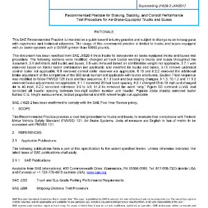 This Recommended Practice provides a road test procedure for trucks and buses, to evaluate their compliance with Federal Motor Vehicle Safety Standard (FMVSS) 121; Air Brake Systems. Units of measure are English in lieu of metric to be consistent with FMVSS 121.