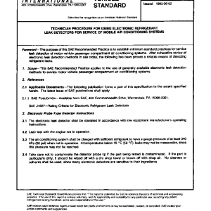 This SAE Recommended Practice applies to the use of generally available electronic leak detection methods to service motor vehicle passenger compartment air conditioning systems.