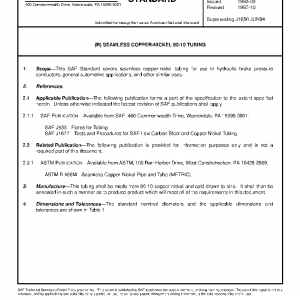 This SAE Standard covers seamless copper-nickel tubing for use in hydraulic brake pressure conductors, general automotive applications, and other similar uses.