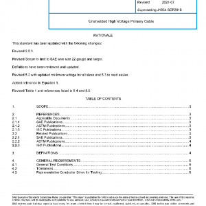 This SAE Standard covers unshielded cable, 22 gauge and larger, intended for use at a nominal system voltage up to 600 V or 1000 V (ACrms or DC). It is intended for use in surface vehicle electrical systems.