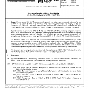 This document is only complete when combined with the requirements of SAE J1657 “Selection Criteria for Retrofit Refrigerants to Replace CFC-12 (R-12) in Mobile Air-conditioning Systems.”