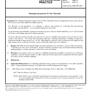 The purpose of this test code is to establish and specify consistent test procedures, conditions, equipment, and performance reports to enable comparison of filter performance of particulate air filters used in automotive interior ventilation systems.