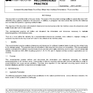 This recommended practice contains dimensions and tolerances for outboard mounted brake drums and disc wheel hubs in the interface areas. The geometric features described in this document are shown at true position. This recommended practice is intended for outboard mounted brake drums and disc wheel hubs commonly used on class 7 and 8 commercial vehicles. Included are SAE J694 mounting systems II, III, IV, XIV, and X. Special and less common applications are not covered.