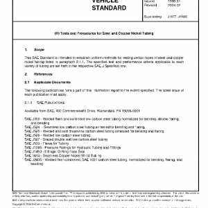 This SAE Standard is intended to establish uniform methods for testing certain types of steel and copper nickel tubing listed in paragraph 2.1.1. The specified test and performance criteria applicable to each variety of tubing are set forth in the respective SAE J Specifications.
