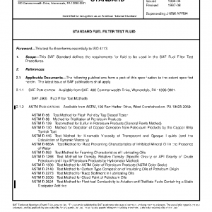 This SAE Standard defines the requirements for fluid to be used in the SAE Fuel Filter Test Procedures.