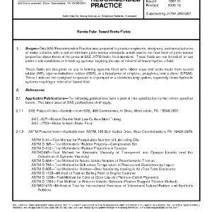 This SAE Recommended Practice was prepared to provide engineers, designers, and manufacturers of motor vehicles with a set of minimum performance standards which covers the next level of performance properties above those of the present SAE J1703 brake fluid standard. These fluids are not intended for use under arctic conditions or in braking systems requiring the use of mineral oil based hydraulic fluid.