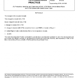 This SAE Recommended Practice is intended to provide basic recommended practices for aid in the development and use of safe and efficient practices for all operations involving the production, handling, and dispensing of SAE J1703 Motor Vehicle Brake Fluids and SAE J1704 Borate Ester Based Brake Fluids.