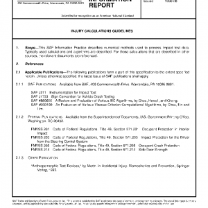 This SAE Information Practice describes numerical methods used to process impact test data. Typically used calculations and algorithms are described. For those calculations that are described in other sources, the relevant documents are referenced.