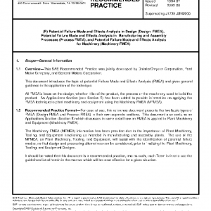 Potential Failure Mode and Effects Analysis in Design (Design FMEA), Potential Failure Mode and Effects Analysis in Manufacturing and Assembly Processes (Process FMEA), and Potential Failure Mode and Effects Analysis for Machinery (Machinery FMEA)