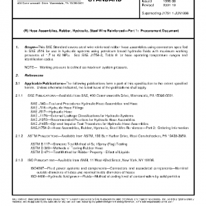 This SAE Standard covers steel wire reinforced rubber hose assemblies using connectors specified in SAE J516 for use in hydraulic systems using petroleum based hydraulic fluids with maximum working pressures of 1.7 to 42 MPa. See SAE J1754-2, Table 8 for hose operating temperature ranges and identification codes.
