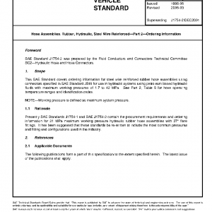 This SAE Standard covers ordering information for steel wire reinforced rubber hose assemblies using connectors specified in SAE Standard J516 for use in hydraulic systems using petroleum based hydraulic fluids with maximum working pressures of 1.7 to 42 MPa. See Part 2, Table 8 for hose operating temperature ranges and identification codes.